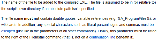 → FileInstall, 설치하려는 파일, 설치하고자 하는 경로, 덧붙임 여부